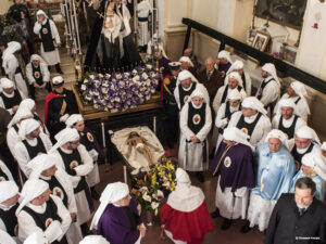 Culmine dei riti, la processione del Venerdì Santo, durante la quale sfilano circa 2.500 confrati incappucciati, che portano i fercoli di Gesù morto e della Madonna Addolorata, sulle note di diverse marce funebri.